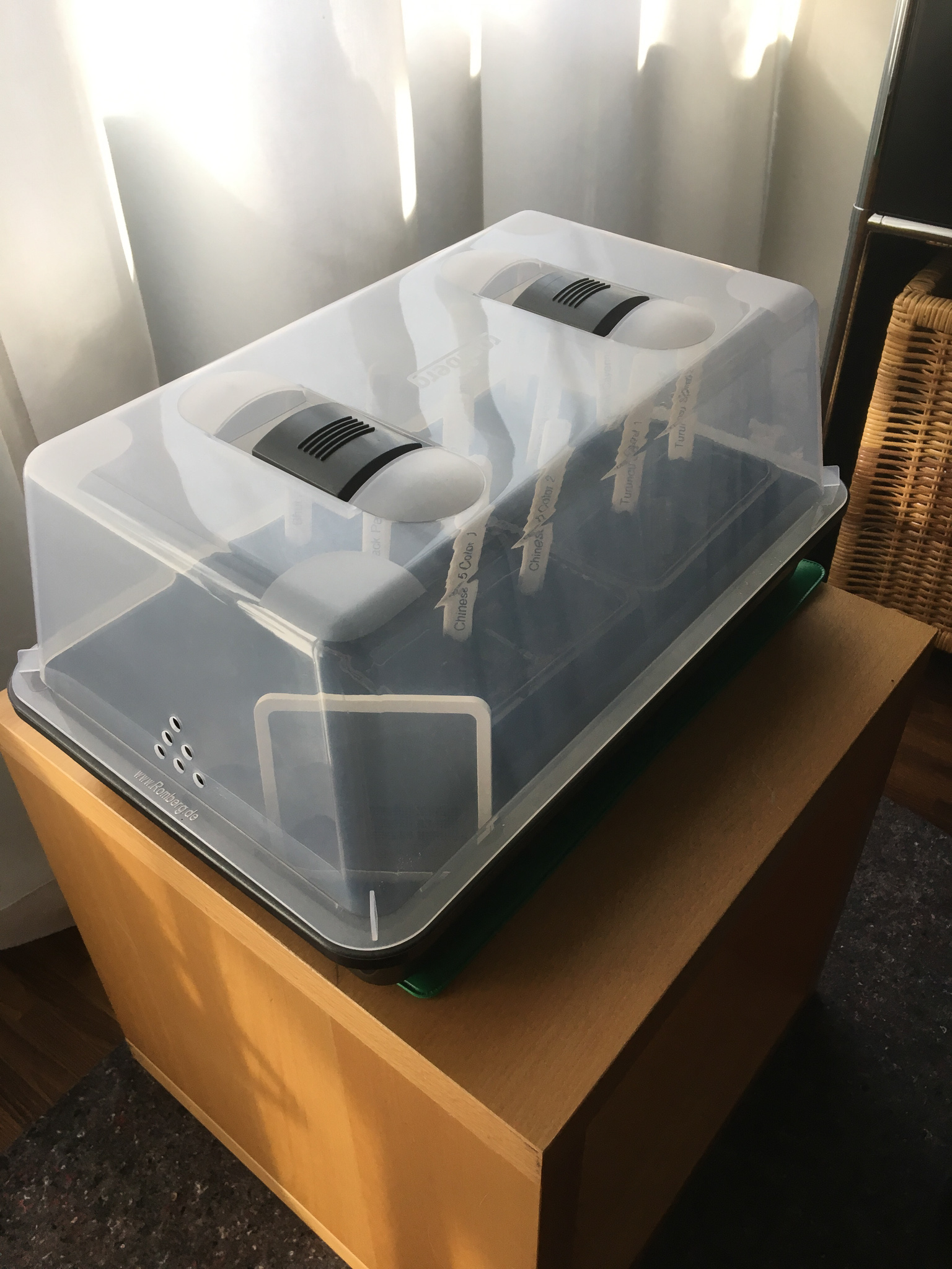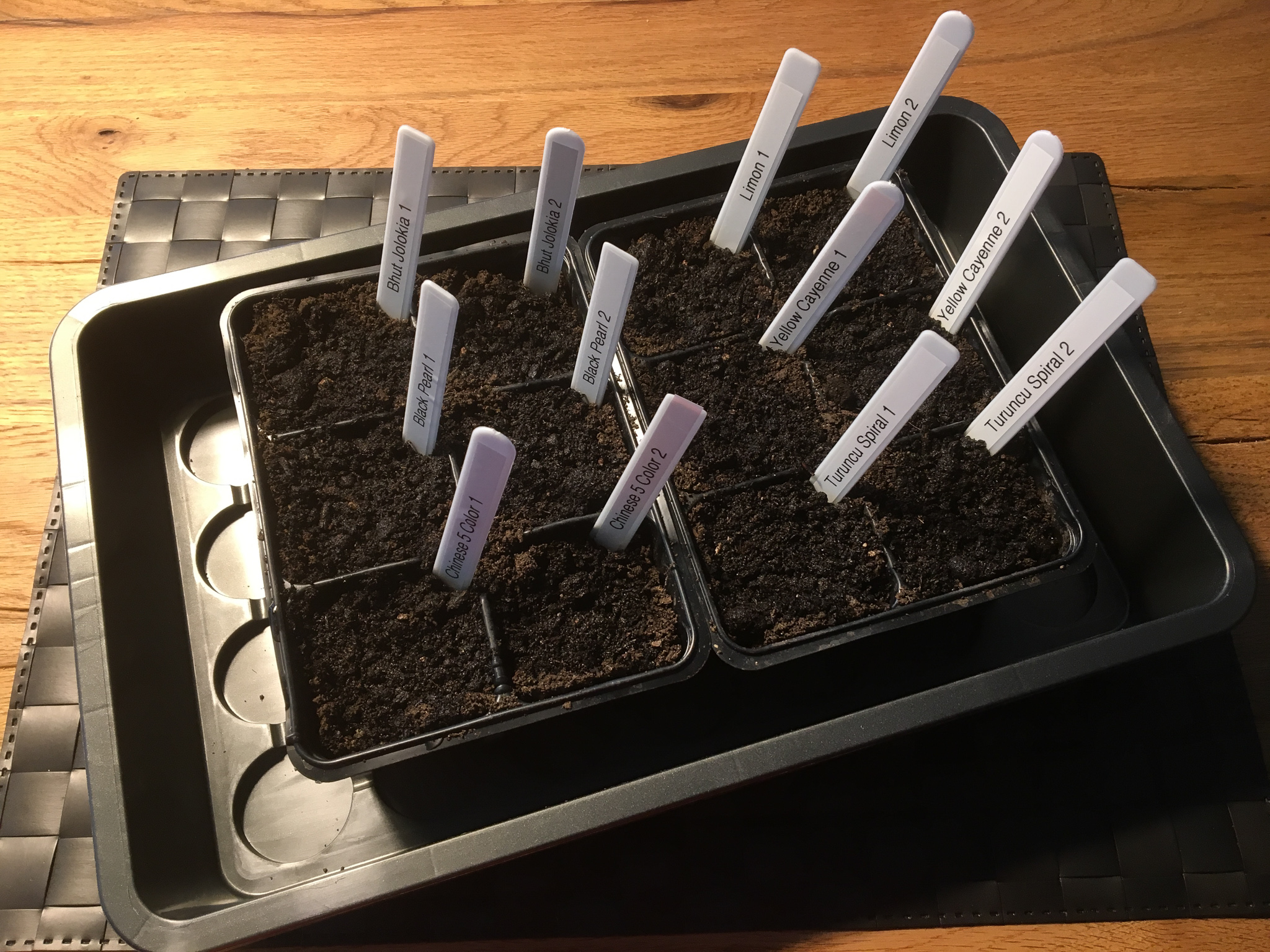 Die Aussaat der Chili Samen erfolgt zwischen Mitte Januar und Ende Februar, damit die jungen Pflanzen rechtzeitig Mitte Mai nach den Eisheiligen bereit für das Auspflanzen sind. Idealerweise verwendet man spezielle Aussaaterde, da diese wenig Nährsalze beinhaltet, die den Keimlingen schaden könnten. Die Samen werden dabei nur leicht mit Erde überdeckt. Samen die zu tief in der Erde sind, könnten verfaulen bevor sie keimen. Damit die Keimung erfolgreich verläuft, hat sich bewährt, die Anzuchtschalen in ein Zimmergewächshaus inkl. Heizmatte zu legen. Darin kann sich ein Klima entwickeln, welches die Keimung begünstigt. Alternativ können die Anzuchtschalen auch auf die warme Fensterbank gelegt werden. Während der ersten Phase ist zu beachten, dass die Erde nie austrocknet. Weiter muss unbedingt mit grosser Vorsicht gegossen werden, da sonst die Samen davon geschwemmt werden könnten. Die Keimdauer variiert je nach Chili Sorte von wenigen Tagen bis zu zwei Wochen.